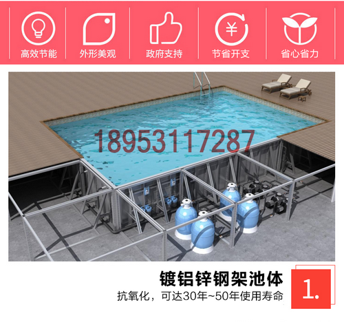 带岭钢结构游泳池可拆装室内恒温游泳馆户外拼装式游泳池